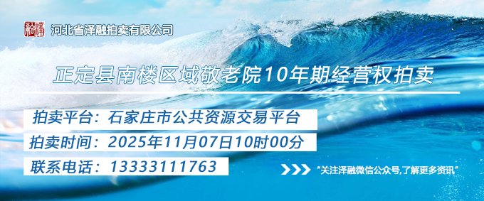 - [拍賣公告]正定縣南樓區(qū)域敬老院10年期經(jīng)營(yíng)權(quán)拍賣(三次)20251107