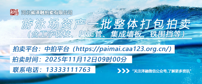 - [拍賣公告]游泳場(chǎng)資產(chǎn)一批(含工字鋼柱、PVC管、集成墻板、鐵圍擋等)整體打包拍賣20251112